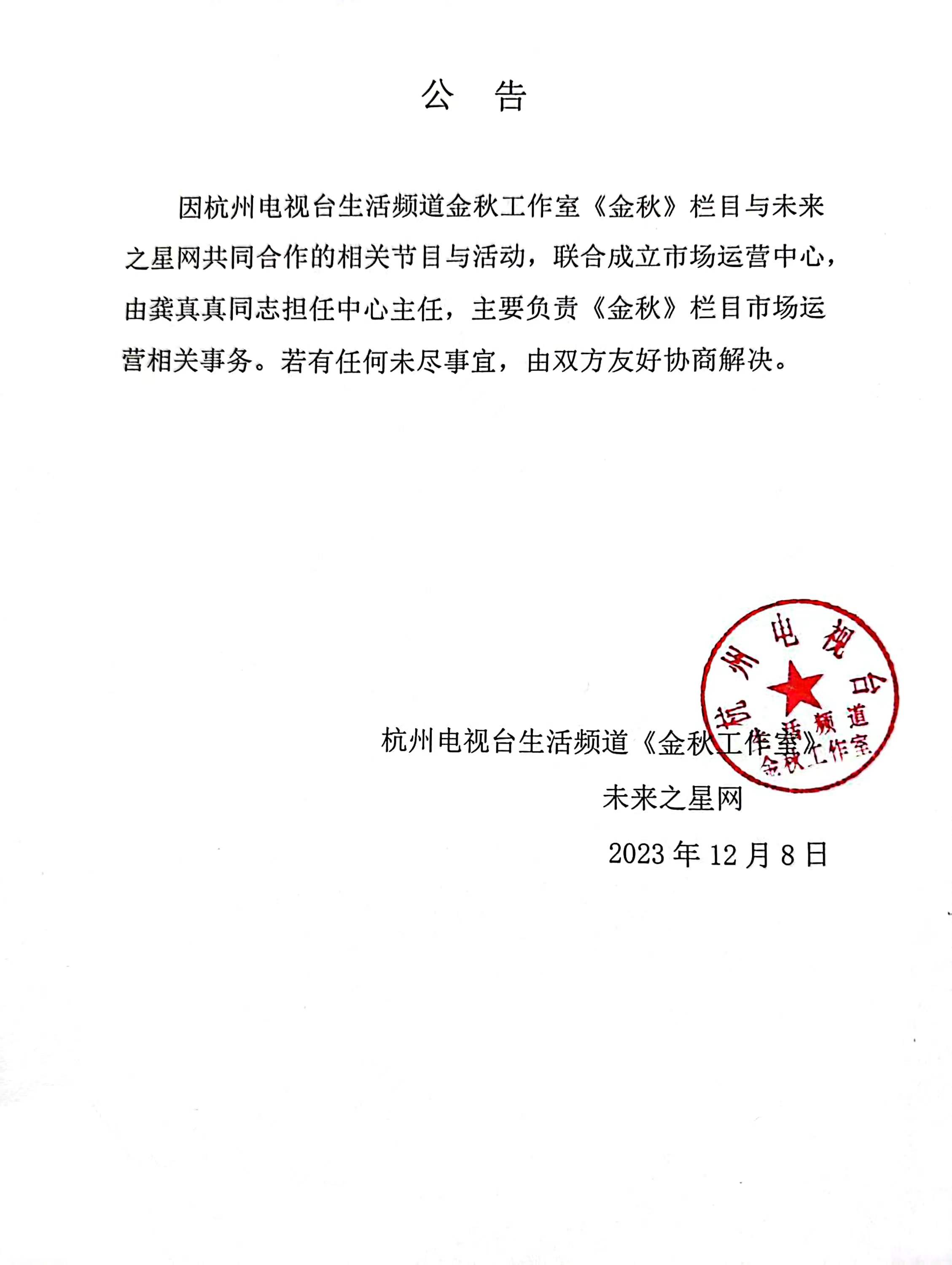 金秋与本网联合公告