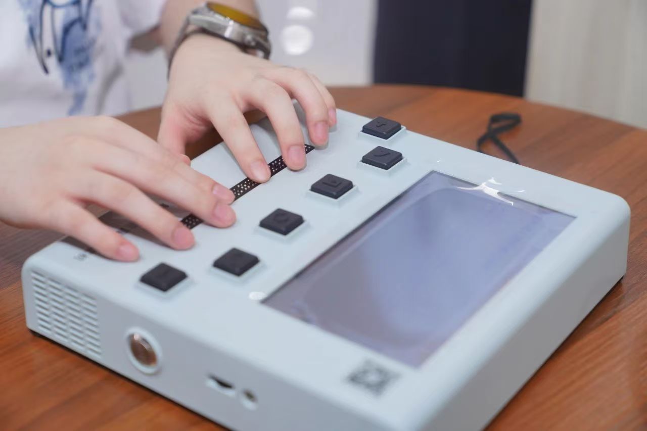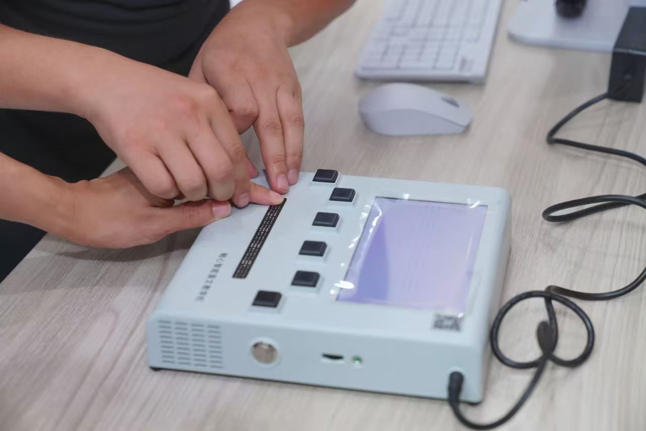 这台放置在服务台的视障阅读机,具备盲文点显和语音阅读功能,可将电子文本转换为语音或可触摸盲文。视障读者借助该设备,可独立、自由地获取书籍报刊信息,就近享受无障碍阅读服务。